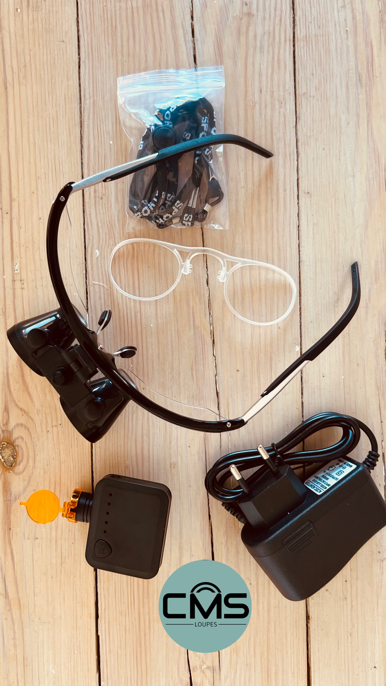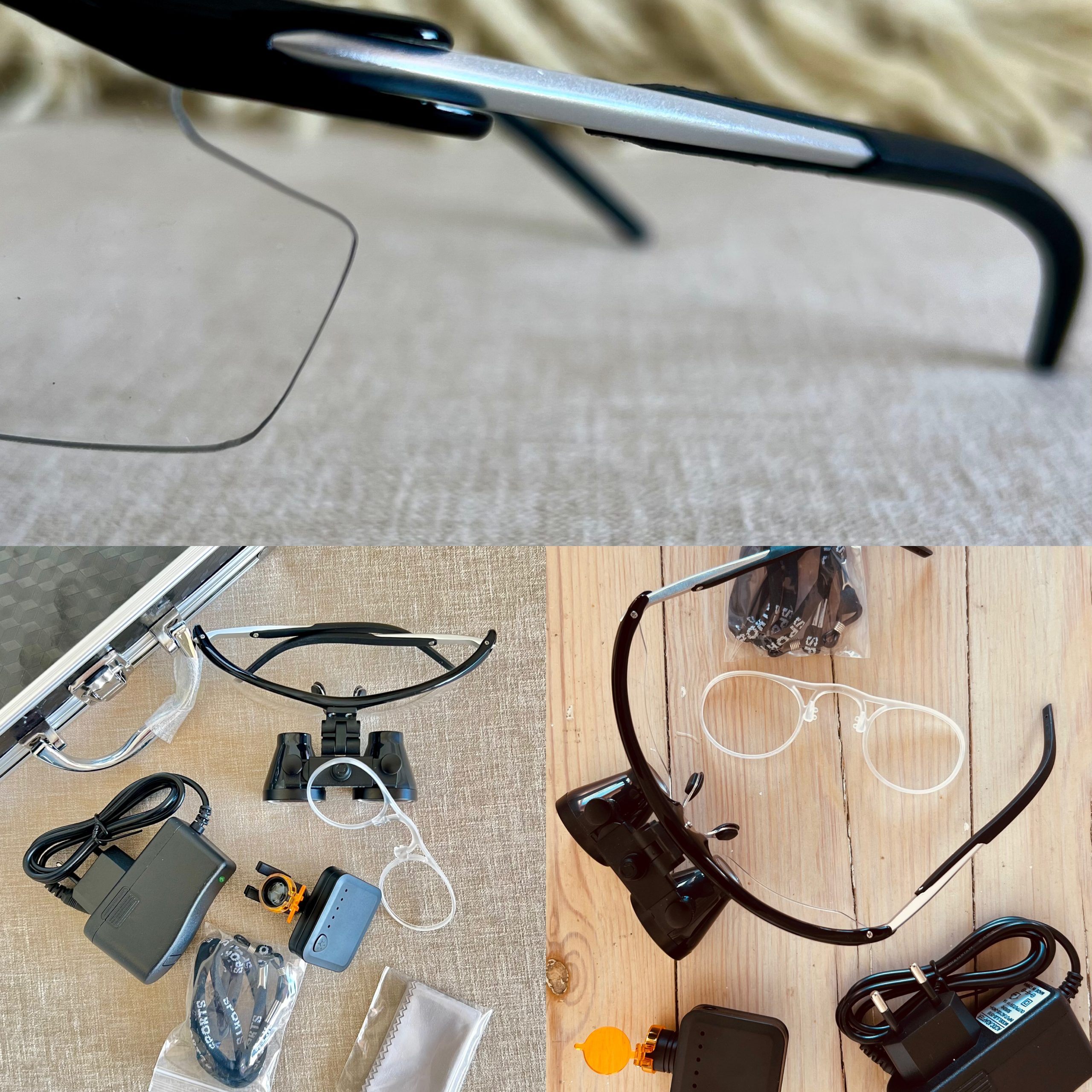 3.5x loupes-5W wireless headlight-detachable inner frame-charger type c-headband-protective carry case.